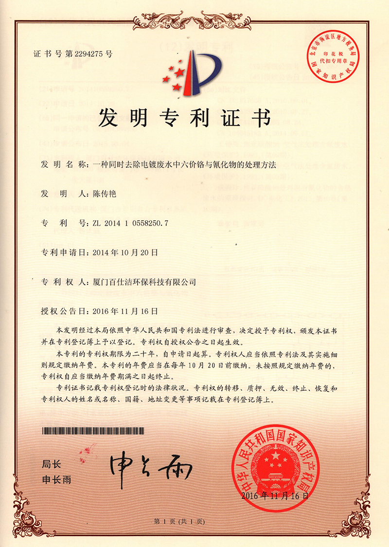 發(fā)明專利證書